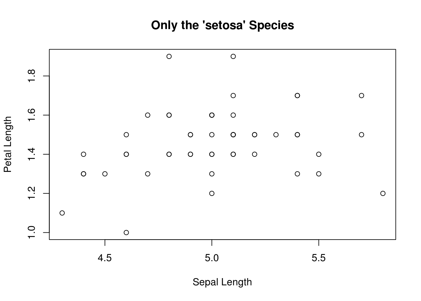 main=title, xlab="Sepal Length", ylab="Petal Length")